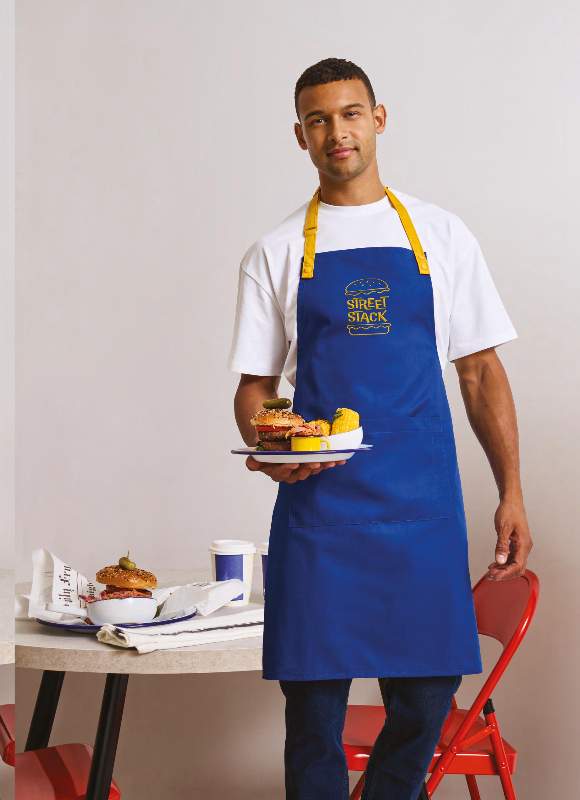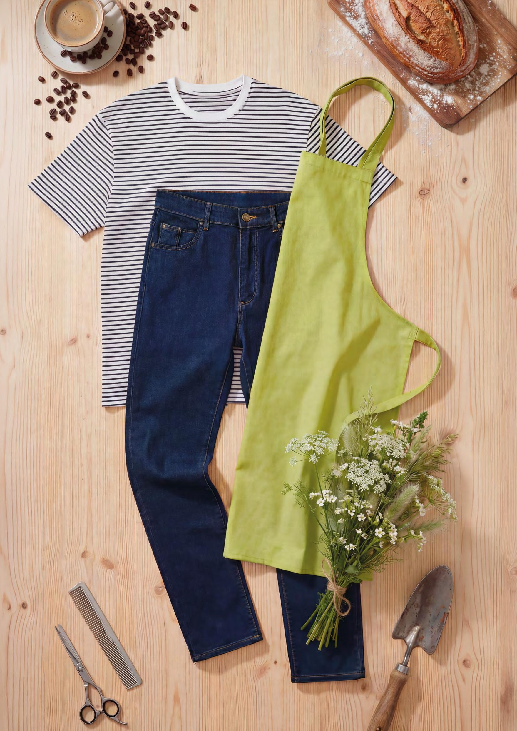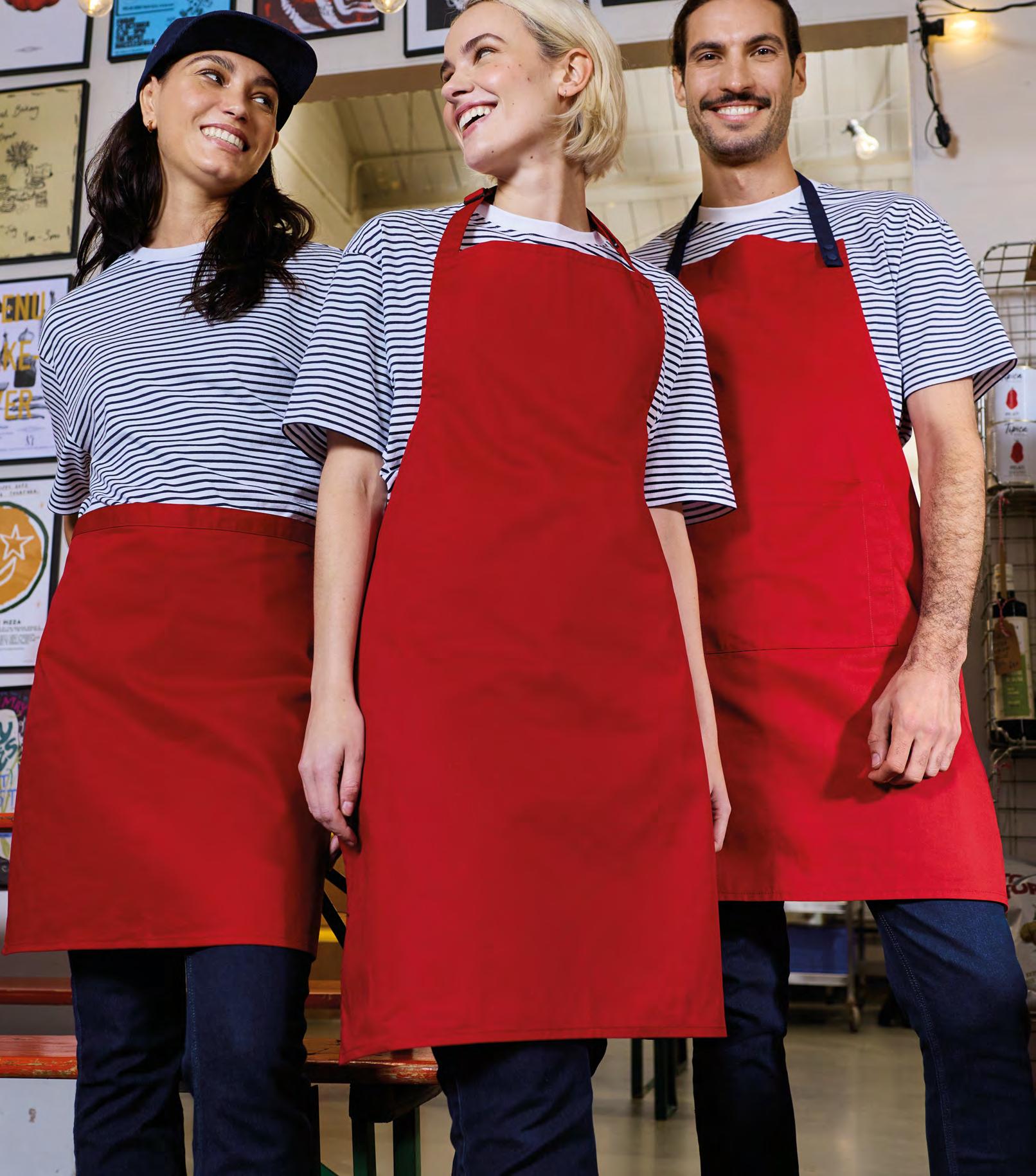 The look we’ve created here celebrates the natural pairing of green and yellow - a fresh, uplifting combination that feels both vibrant and beautifully balanced. Together, these two colours bring out the best in each other, creating a unified team aesthetic that feels full of energy, warmth and effortless style. By mixing bib and waist aprons and pairing them with complementary tees and shirts, you can build a look that’s both cohesive and visually impactful.