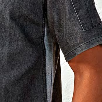 PR127 „Domain“ DenimLatzschürze mit Kontrastbesatz 97 PR128 „Domain“ DenimBistroschürze mit Kontrastbesatz 97 PR129 „Barista“-Latzschürze mit Überkreuzträgern 109