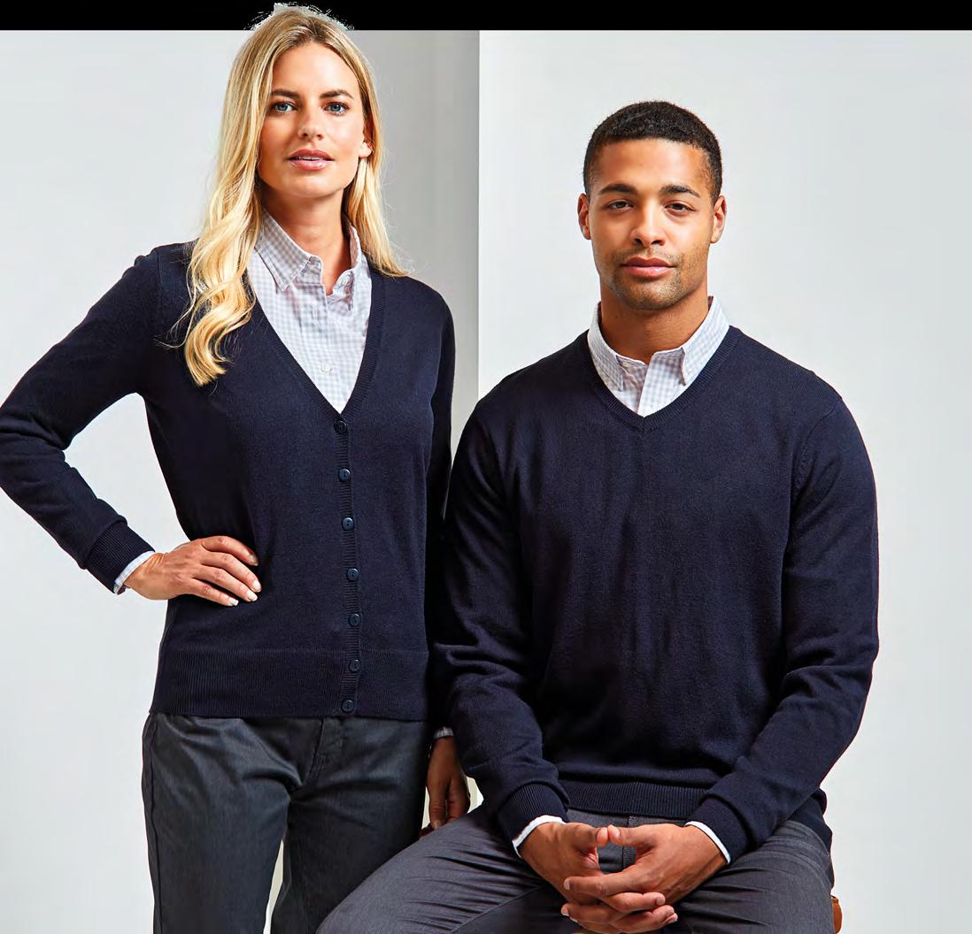 Entdecken Sie eine StrickKollektion, die unsere Hemden und Blusen perfekt ergänzt. Modische Modelle mit V-Ausschnitt und hohem Baumwollanteil halten Ihre Mitarbeitenden angenehm warm.