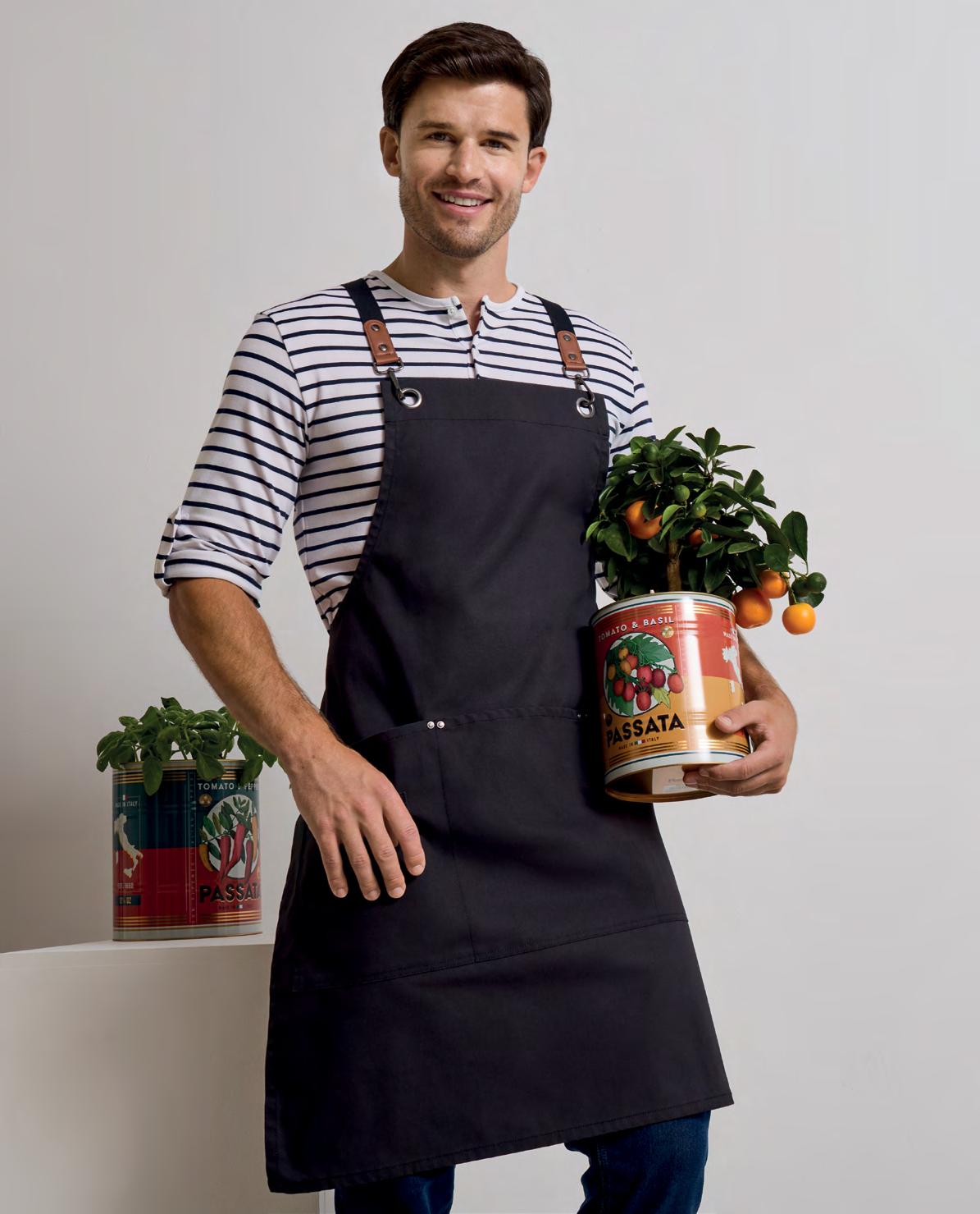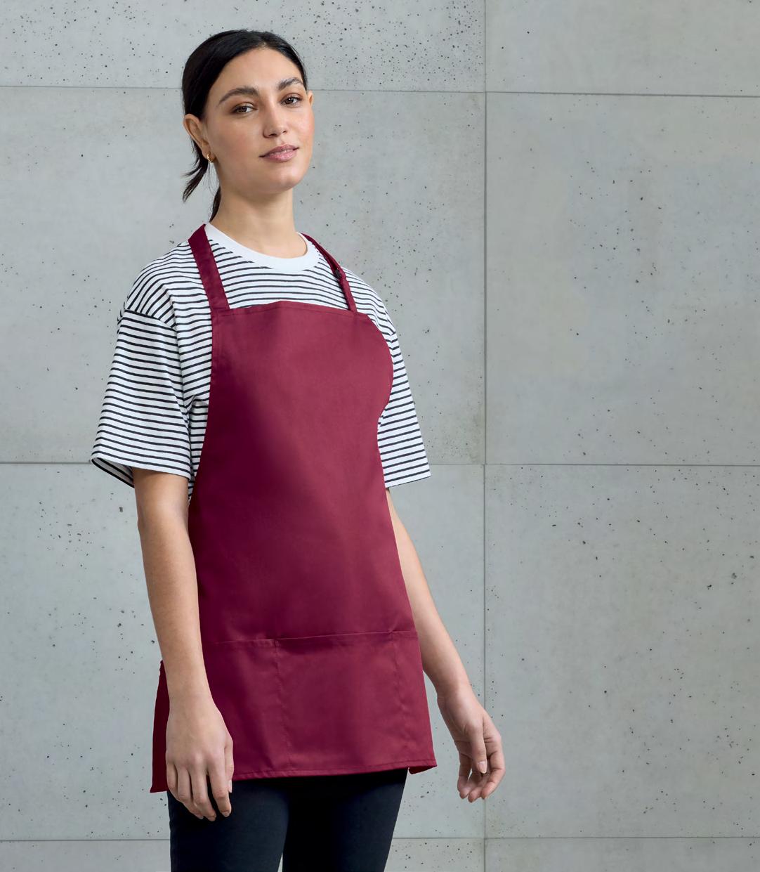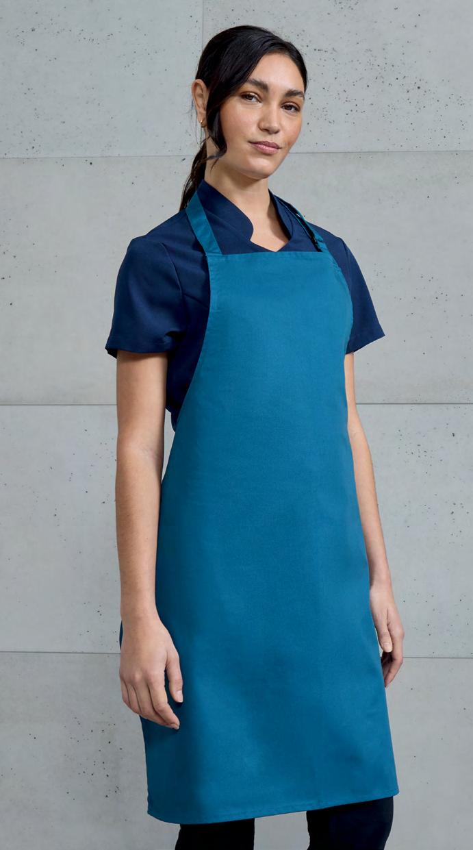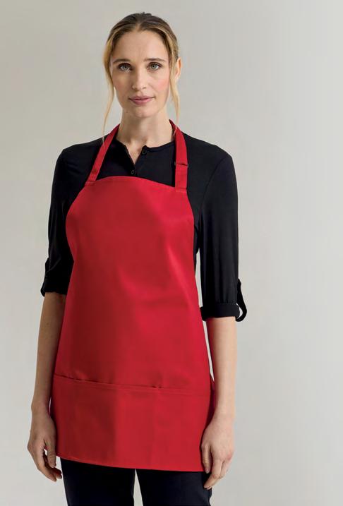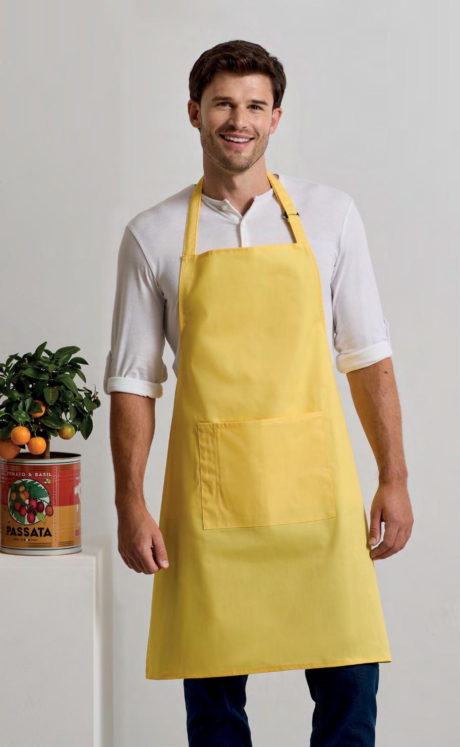 PR159 Tablier 2-en-1 « Colours Collection » Tablier à porter de deux façons, Tablier bavette qui se replie pour créer un tablier a la taille, Poche fantaisie sur les deux styles” 65 % polyester, 35 % coton, 195 g/m² 10 coloris