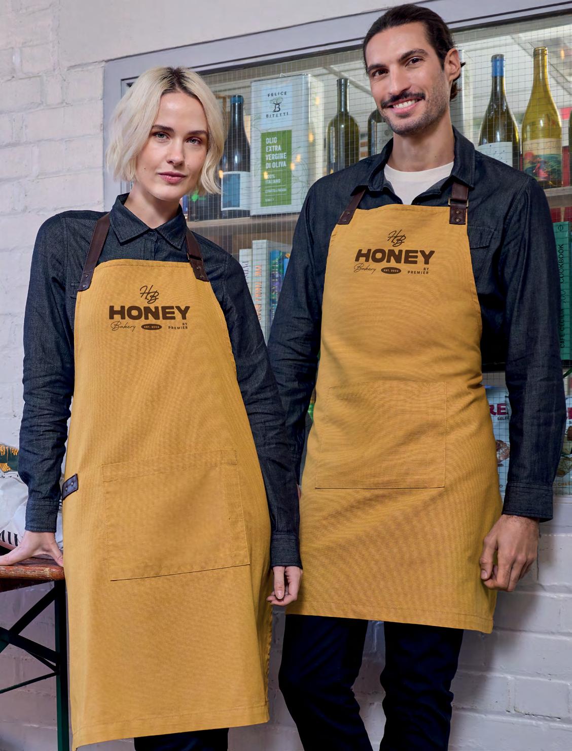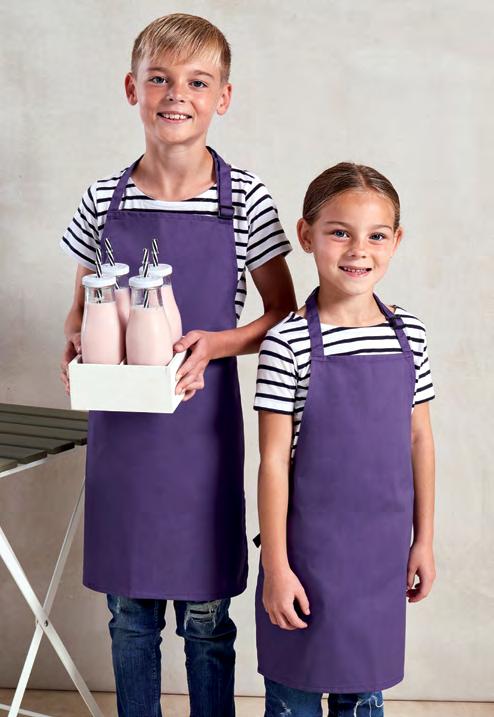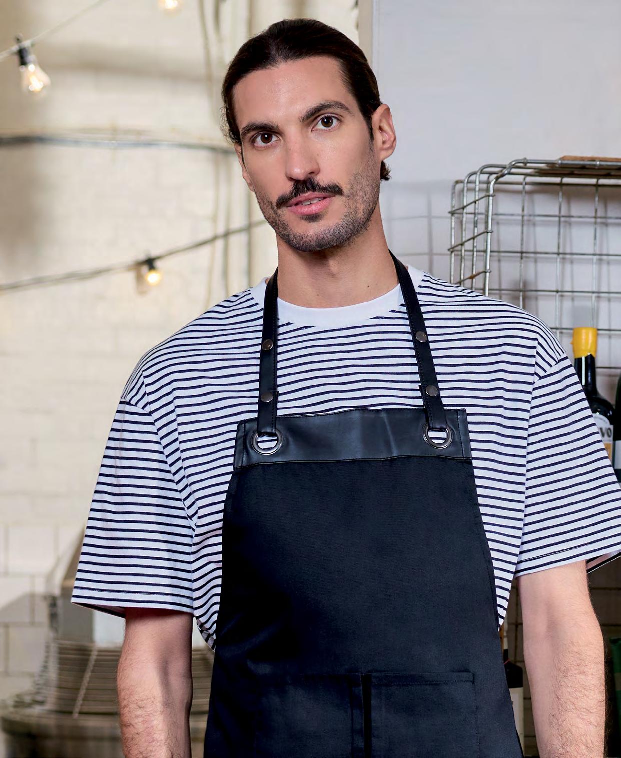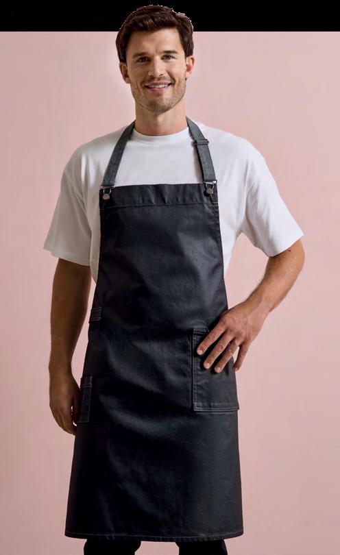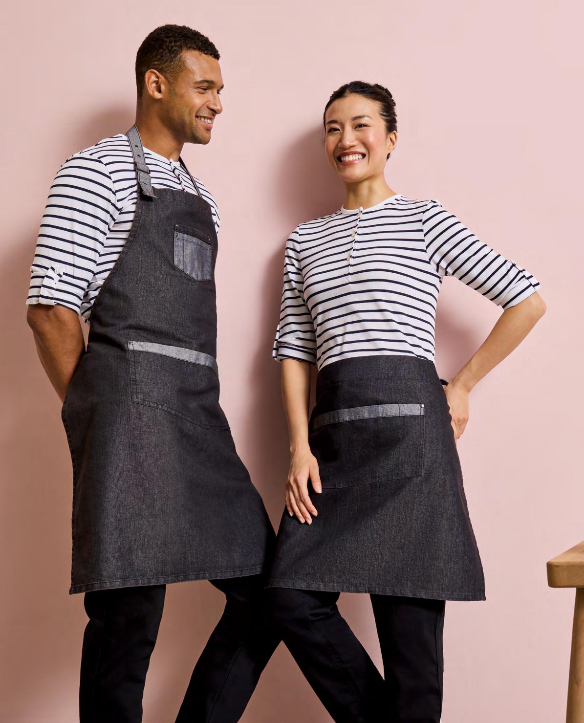 PR159 Tablier 2-en-1 « Colours Collection » Tablier à porter de deux façons, Tablier bavette qui se replie pour créer un tablier a la taille, Poche fantaisie sur les deux styles” 65 % polyester, 35 % coton, 195 g/m² 10 coloris