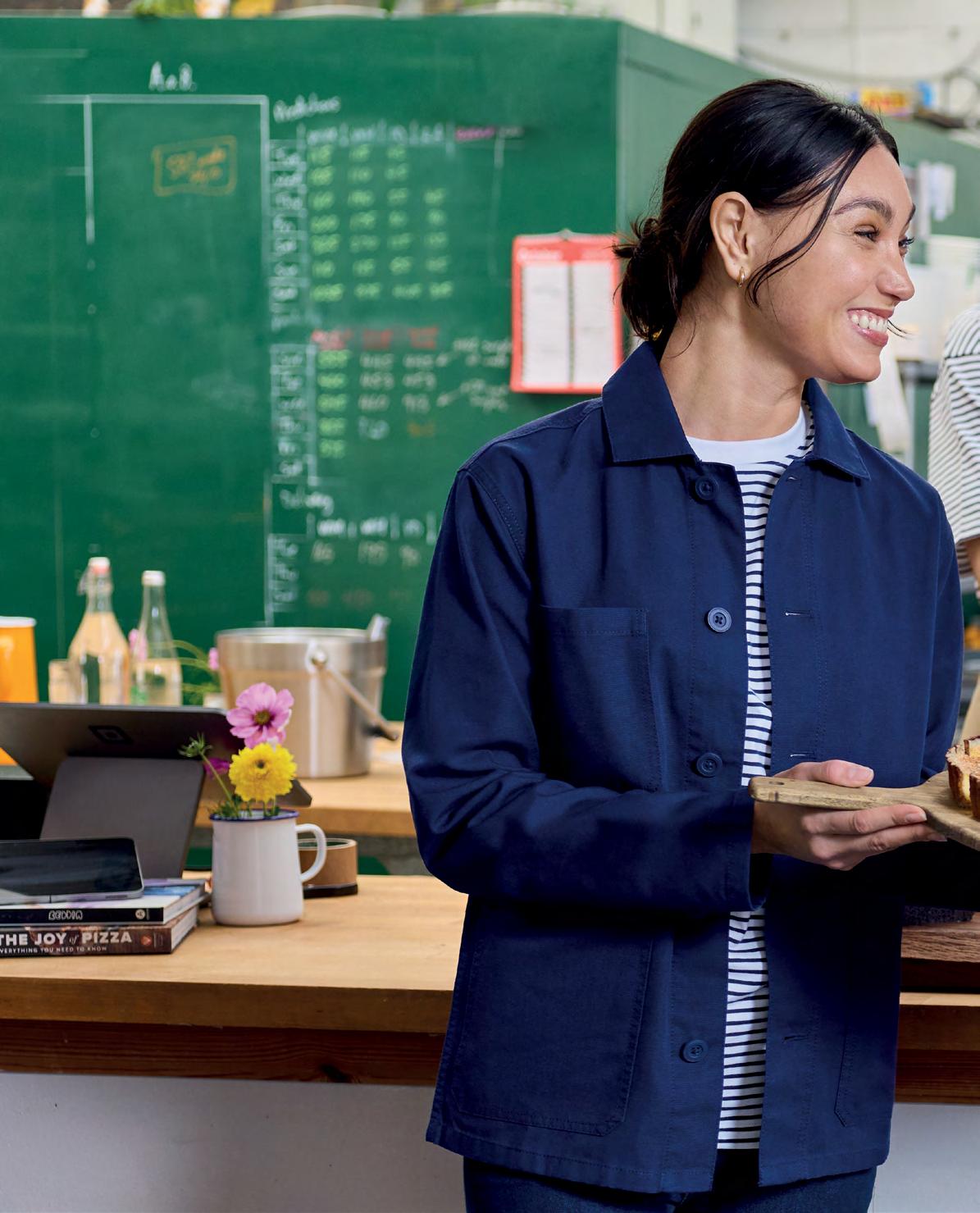 Créez un look Utility fort, affirmé et résolument cool, autour de l’alliance parfaite du vert olive et du bleu marine intense. Le vert olive évoque un naturel chaleureux inspiré des tenues de travail authentiques, tandis que le bleu marine apporte une touche nette et moderne, en phase avec l’univers de la rue, l’idéal pour les food-trucks, les cafés et les lieux d’hospitalité décontractés.