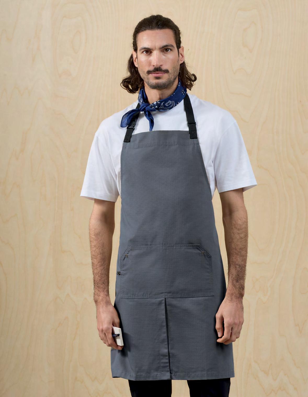 PR023 Tablier Ripstop « Utility 2.0 » Toile Ripstop pour une résistance à l’usure et aux déchirures. Contient du polyester certifié recyclé. Lanière autour du cou Utility de style ceinture de sécurité avec boucle à clip. Fente dans le milieu pour faciliter les mouvements. Poche centrale à rivets avec languette en tissu. 65 % polyester recyclé, 35 % coton, 255 g/m² 86 cm de long x 72 cm de large, attache à la taille de 90 cm 5 coloris