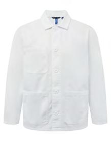 PR603 Blouse de travail à 3 poches « Essential » Contient du polyester certifié recyclé. Article conçu pour un lavage industriel. Trois poches plaquées. Cinq boutons-pression dissimulés. Col à revers élégant 65 % polyester recyclé, 35 % coton, 195 g/m² Tailles : 2XS – 5XL White