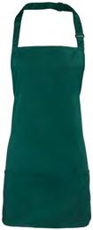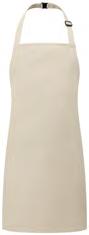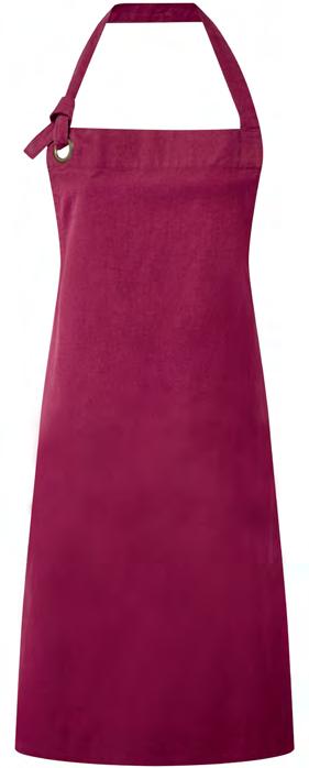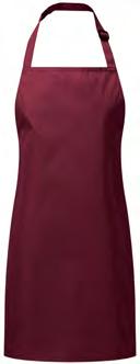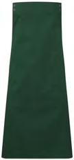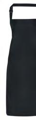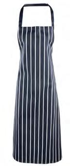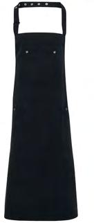 PR132 ‘Chino’ Bib Apron Full bib Apron measuring 86cm long by 72cm wide. ‘Chino’ style stitched pockets with rivets. Neckband with buckle and adjustable snap button fastening