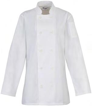 Flattering feminine fit with bust and back darts. Mandarin collar. Eight ‘bar’ button fastening 100% Polyester, 185gsm