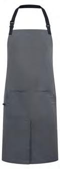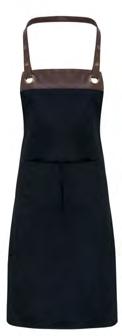 PR136 ‘Division’ Waxed-Look Bib Apron with Faux Leather Durable waxed look finish giving a water repellent surface. Contrast fabric features for function and decoration. Faux leather ties and neckband with adjustable buckle. Tinted denim effect created by contrast coloured yarns 100% Cotton Denim with Acrylic ‘Waxed Look’ coating, 350gsm 4 colours