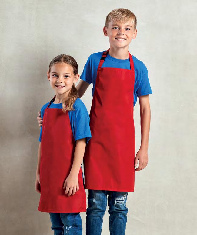 PR115 Waterproof Bib Apron Adjustable buckle on neckband. Waterproof and bleach resistant. 90cm self fabric ties 100% Polyester with Polyurethane coating, 110gsm 8 colours