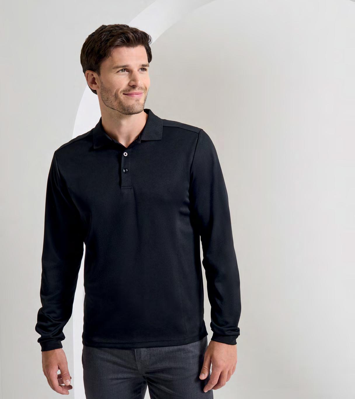and cuffs. Three button placket. Snag and crease resistant. Silvadur™