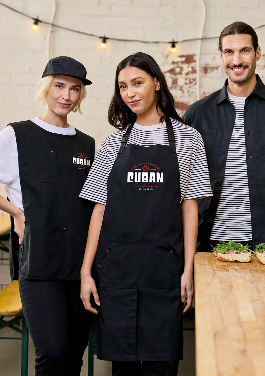 For over 25 years, Premier has led the hospitality uniform space, delivering style-driven, highperformance pieces that elevate brands and teams. From neighbourhood pubs and premium hotel chains to cool cafés and bustling food markets, our styles are worn by front-of-house, kitchen and catering teams who work hard - and want to look good doing it!