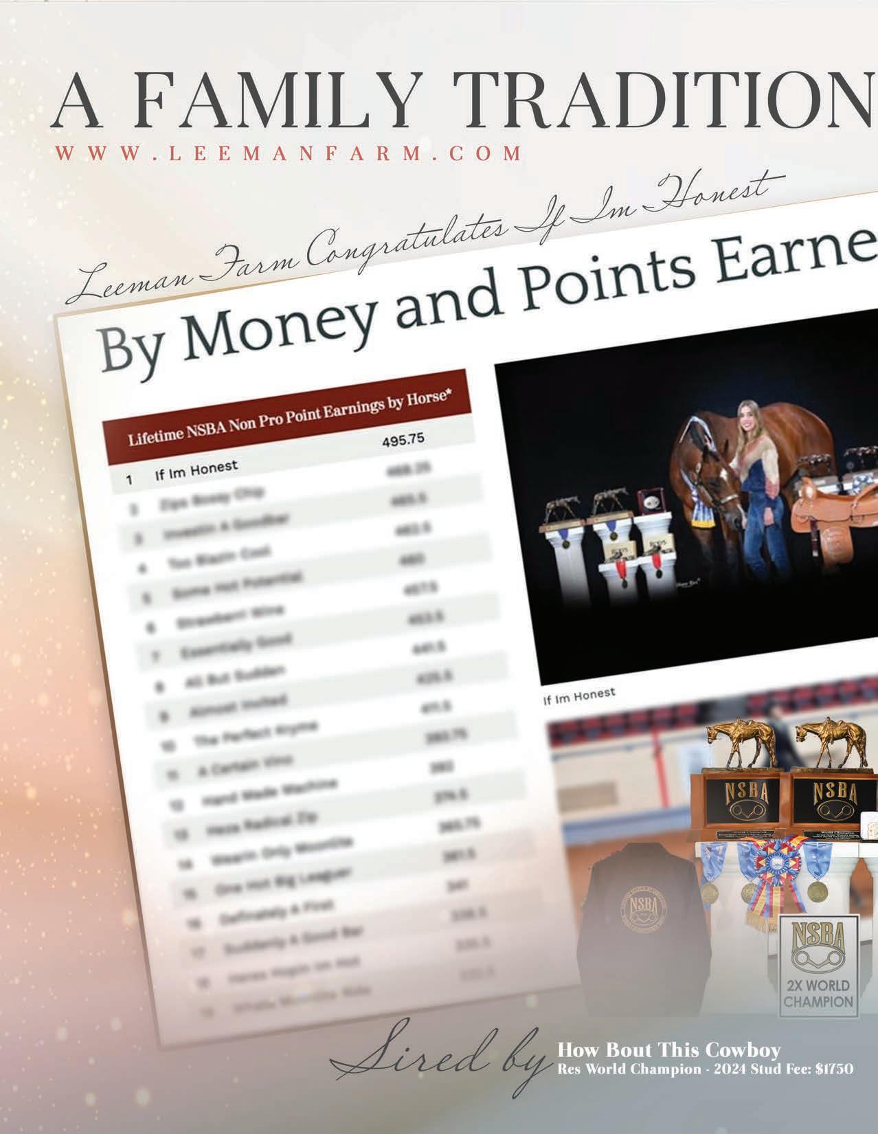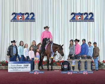 RJ’s wife Aubrey competed on the equestrian team for Southern Methodist University and Molli competed for Texas A&M. Though RJ no longer shows, Aubrey competes in the pleasure with her three-year-old mare HayDay, by Hay Goodlookn, under the guidance of Mark and Judy Zeitler. Horse showing is still a family affair for RJ and Aubrey and their extended families. “Horse shows now are a time when we can get together and enjoy spending time with our parents and longtime friends and family,” says RJ.