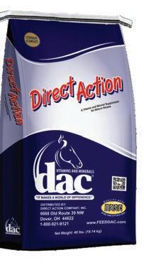 Since then, dac® has been an industry leader in the ever-growing area of biotechnology in the feed business. Today’s customers count on dac®’s timetested research and technology that delivers products that enhance performance for their equine partners. With over 40 products available, RJ shares that dac® offers products to meet multiple goals in performance horses including weight gain, joint support, hair and coat enhancement, gut health, calming, and more.