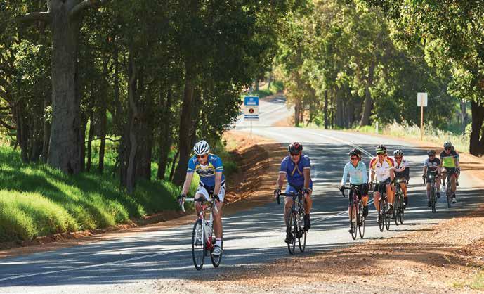 Road cyclists can wind their way through the quiet country roads of the Region. Yarloop to Wokalup, via Harvey and