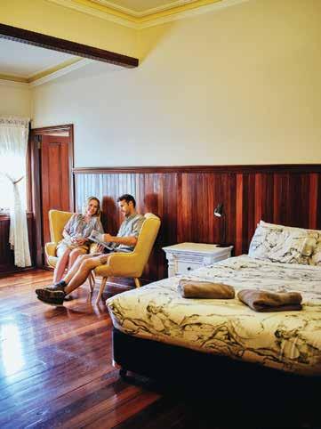 Whether you’re seeking an experience in nature, some cosy creature comforts, or a delightful retreat, there are accommodation options for all in Collie. Honeymoon Pool and Potter’s Gorge are must-visit hotspots for avid campers looking to kick back among the gumtrees or get out on the hiking or mountain biking tracks. Lake Kepwari is also a complete paradise if a weekend of water-based fun is for you (read more on page 44).