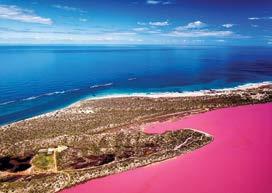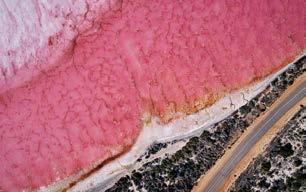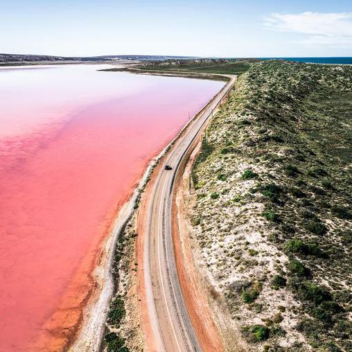 Hutt Lagoon was given its colourful name by explorer George Grey who camped on its edge in 1839. The pink hue is due to the presence of the carotenoid producing algae, Dunaliella salina, a source of beta carotene.