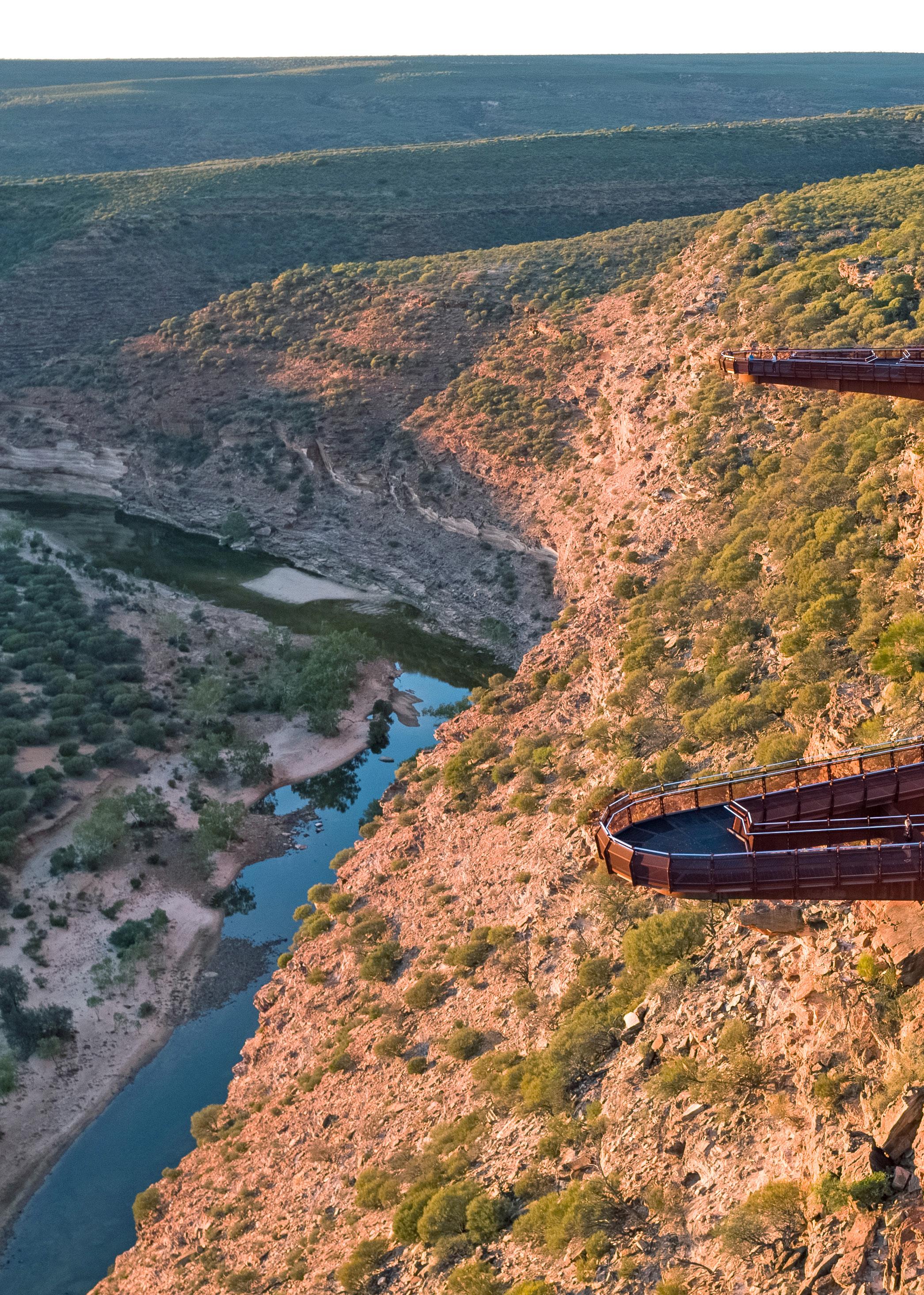 River Gorge | @somethingwildFloat on air as you take a thrilling walk out along two cantilevered viewing platforms that hang in mid-air 100 metres above the gorge at this world class tourism attraction.