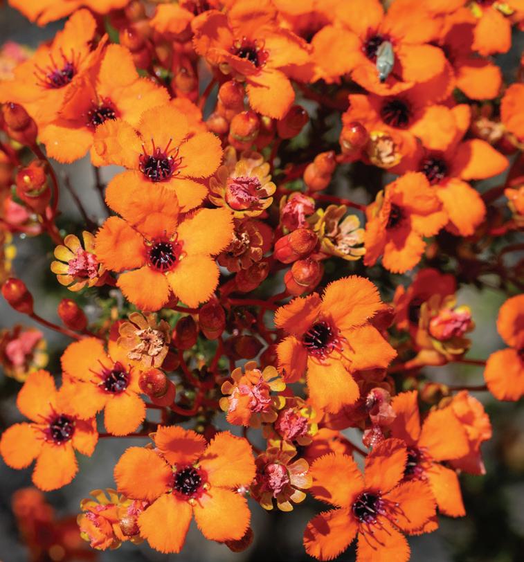 The sand plains are rewarding places to explore with starflowers, kangaroo paws, feather flowers and orchids, to name just a few. Further east towards Galena Bridge, carpets of pink and white everlastings can often be found. One of the later flowers to emerge is the aptly named smelly socks (white plume grevillea). These distinctive plants growing along the roadside display pink buds at the end of long stalks that open out to big, beautiful, white flowers that release a sickly sweet smell at dusk to attract nocturnal insect pollinators. Visitors may also notice pine trees growing along the roadside. These are sandplain cypress (Callitris) and native to the area. The Kalbarri Visitor Centre will keep you up to date with what’s flowering where. Pop in to see the friendly staff for a wildflower update or purchase the exclusive Kalbarri wildflower guide.