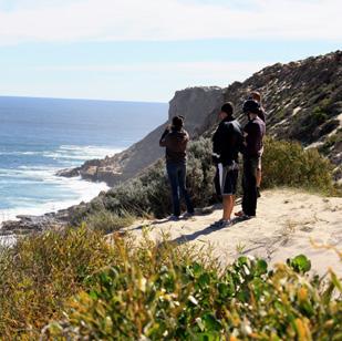 Class 3, 8km one-way (16km return) (approx 4 hrs) or shorter if you join the trail at Island Rock or Grandstand. Bigurda is Nanda for a small kangaroo. Connecting Eagle Gorge to Natural Bridge, this sandy trail provides stunning coastal views with great photo opportunities. From winter through to the end of spring, walkers will see a vast array of wildflower species. Some parts of the trail have uneven surfaces with loose stones; it hugs the coastline and is close to the cliff edge so watch your step.