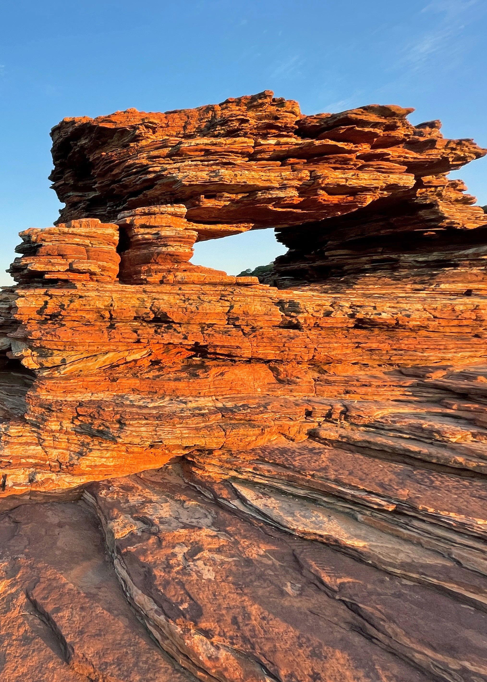 Class 3, 1km return. Perfectly framing the river, this is one of the most photographed sites on Australia's Coral Coast. Please be careful near edges and do not climb on the fragile rock. Do not climb through or on top of the window or hang off the ledges. Always obey the signage that Parks and Wildlife have in place as it is for a sustainable future for all to enjoy and for your safety.