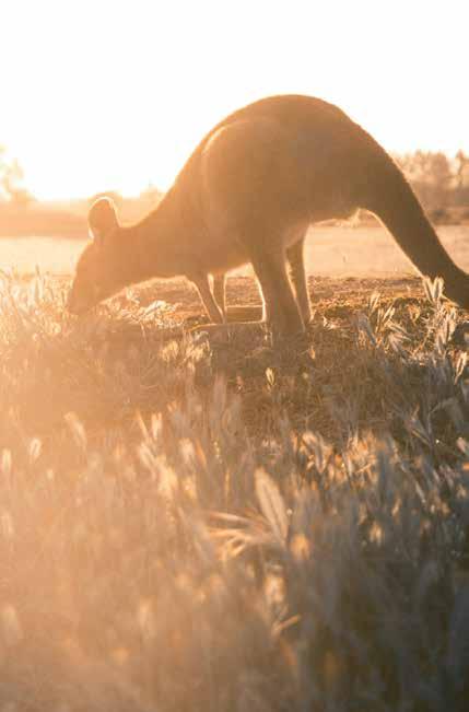 It’s an incredibly dreamlike location where kangaroos and ducks, and the odd emu opt to spend their time. The accommodation has 103 rooms in a two-storey complex surrounding a central vineyard. Each room has a courtyard or balcony, with groundfloor rooms ‘almost guaranteed’ to feature a kangaroo on their doorstep in the morning. Restful spaces are incorporated into the resort, like the ‘koi moat’, which runs along the front and can be crossed via small bridges, and the outdoor bar that sparkles with fairy lights in the evening.
