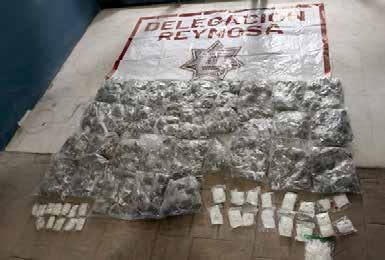 Asimismo, fueron aseguradas mil 550 bolsas transparentes con hierba seca con características propias de la marihuana, 700 bolsas transparentes con polvo blanco con características similares a la cocaína y 520 bolsas transparentes que contenían una sustancia con las características del narcótico conocido como crack.