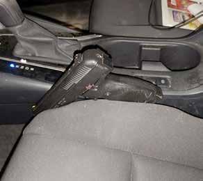 Al realizar una inspección al interior del automóvil, se localizó y aseguró un arma corta calibre .40, así como seis dispositivos de radiocomunicación de diversas marcas.