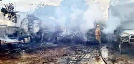 Un incendio en una pensión de tráileres alcanzó al menos dos vehículos de carga y otros dos autos, entre ellos un deportivo, y movilizó a bomberos y rescatistas, ya que amenazaba con alcanzar un domicilio, en Guadalupe. El siniestro fue reportado a las 16:20 horas, en predio de la empresa Transportes López Villarreal, ubicado en la calle