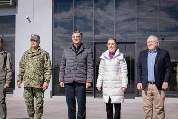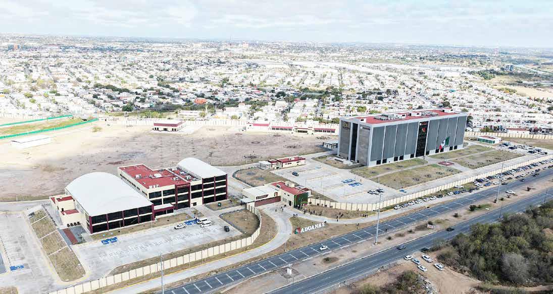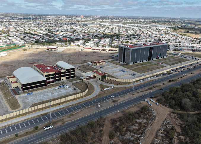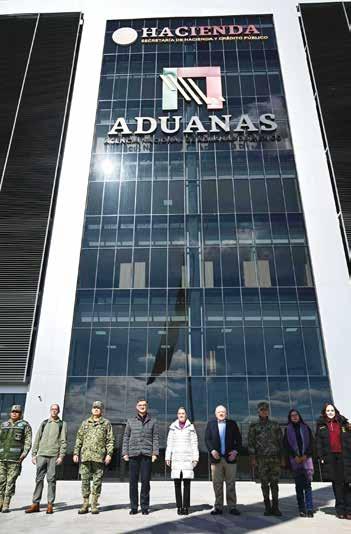 El área administrativa es un edificio corporativo de seis niveles con capacidad para mil 100 personas, además de contar con un polideportivo, área comercial y 600 viviendas para las y los trabajadores. En tanto, el secretario de la Defensa Nacional, Ricardo Trevilla Trejo, dijo que entre los pasos fronterizos, de la frontera con Estados Unidos, destaca Nuevo Laredo, debido a que genera el mayor porcentaje en recaudación fiscal con alrededor del 33 por ciento de todas las aduanas terrestres del país. Previo al evento oficial, la presidenta Sheinbaum hizo un recorrido por las instalaciones y cortó el listón inaugural. También asistieron el titular de la Agencia de Transformación Digital, José Antonio Peña Merino; el ingeniero residente de obra Juan Mateo Frausto; la coordinadora general de Asuntos Gubernamentales, Leticia Ramírez Amaya y la