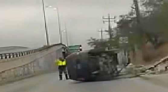 la lateral de la carretera a Río Bravo, frente a Villas de Imaq, volcó la camioneta.