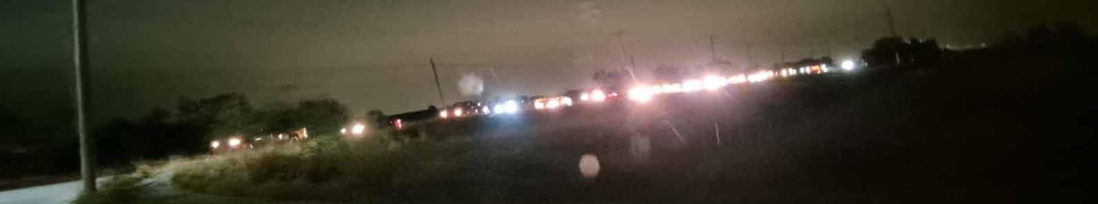 Largas filas en la Brecha 12; respetando la velocidad con los topes plásticos y así evitar accidentes automovilísticos, para las familias de Misiones del Puente que tienen que incorporarse a la B12.