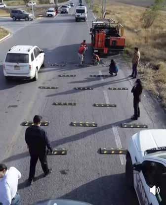 A solicitud reiterada de los residentes del Fraccionamiento Misiones del Puente, el alcalde Miguel Ángel Almaraz Maldonado informó sobre la colocación de topes de plástico para la reducción de velocidad en la Brecha 12, una vialidad considerada de alto riesgo por el exceso de velocidad con el que circulan los vehículos.