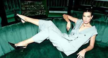 quien luce prendas de la última colección de Boss Woman. También aparece en los desfiles de marcas internacionales como The Row, de las hermanas Olsen, MaxMara y Saint Laurent quienes lo reinventan con texturas dejando que sea un aburrido color de oficina para transformarse en un vehículo para lograr ma-