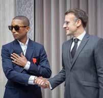 De acuerdo con el Daily Mail, Macron condecoró a Williams como Caballero, colocando una medalla con una cinta roja en su traje azul francés, que el diseñador lució con camisa blanca y sin corbata.