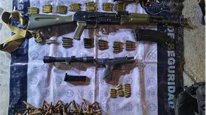 Los patrulleros desarmaron a los hombres y les aseguraron dos armas de fuego largas, dos cortas, varios cargadores, cientos de cartuchos, chalecos tácticos, ponchallantas y una mira telescópica.