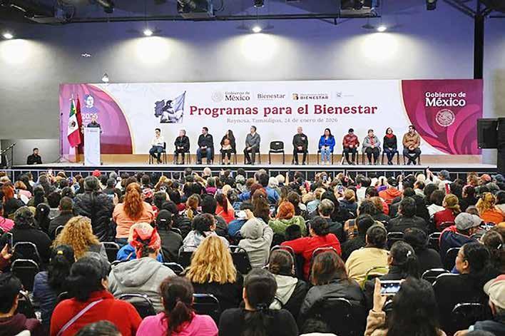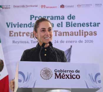 Reynosa, Tamaulipas, 24 de enero de 2026.- Desde Reynosa, Tamaulipas, la Presidenta de México, Claudia Sheinbaum Pardo, destacó que cuando se elimina la corrupción, alcanza para realizar más acciones. Por ello, anunció que en el estado se implementan los Programas para el Bienestar que benefician a 816 mil personas, se repavimentarán 407 kilómetros (km) de carreteras federales, se construirá el Bachillerato Tecnológico Plantel Reynosa y se crearán nuevos puentes, así como obras en materia de agua y el tramo Saltillo-Nuevo Laredo del Tren del Golfo de México.