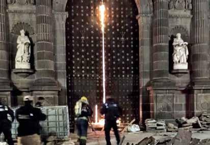 "Al parecer, a eso de las 2 AM, dos individuos ingresaron al atrio de la Catedral, saltando las rejas por el lado del Zócalo, para luego aproximarse a la puerta de dicho lado e iniciar un incendio", comunicó.
