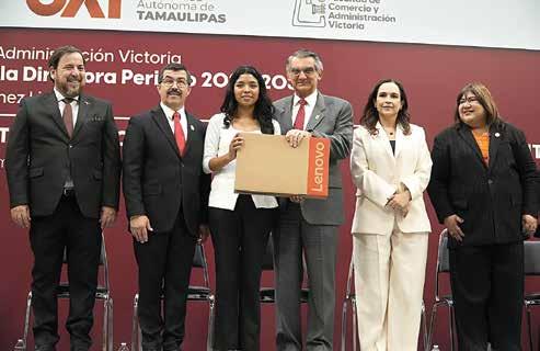 En este marco, hicieron entrega de computadoras portátiles a estudiantes de las facultades, unidades académicas y preparatorias de la UAT de Ciudad Victoria y Ciudad Mante, con el objetivo de fortalecer sus herramientas de aprendizaje.