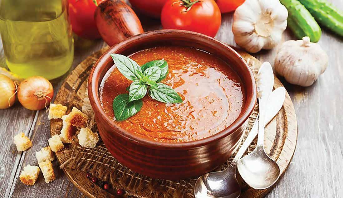 itomates, y un par de vegetales más, pan, aceite, vinagre y sal es todo lo que se necesita para hacer un gazpacho clásico, el cual no solo es representativo de la cocina española, sino también de la dieta mediterránea. Esta fue reconocida por la UNESCO como Patrimonio Cultural Inmaterial en 2010.