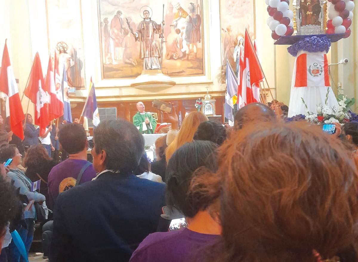 Ahí, superaron con creces la capacidad del templo y, unos dos mil fieles perua nos, colmaron las bancas, los pasillos y el frontis para acudir a la ceremonia.
