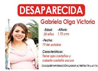 La Policía inició una ex haustiva búsqueda de Ga briela Sevilla Torello (30), embarazada de nueve me ses de gestación, de quien –para la ministra de la Mujer y Poblaciones Vulnerables, Claudia Dávila- se cree haya caído en una red de trata de personas.