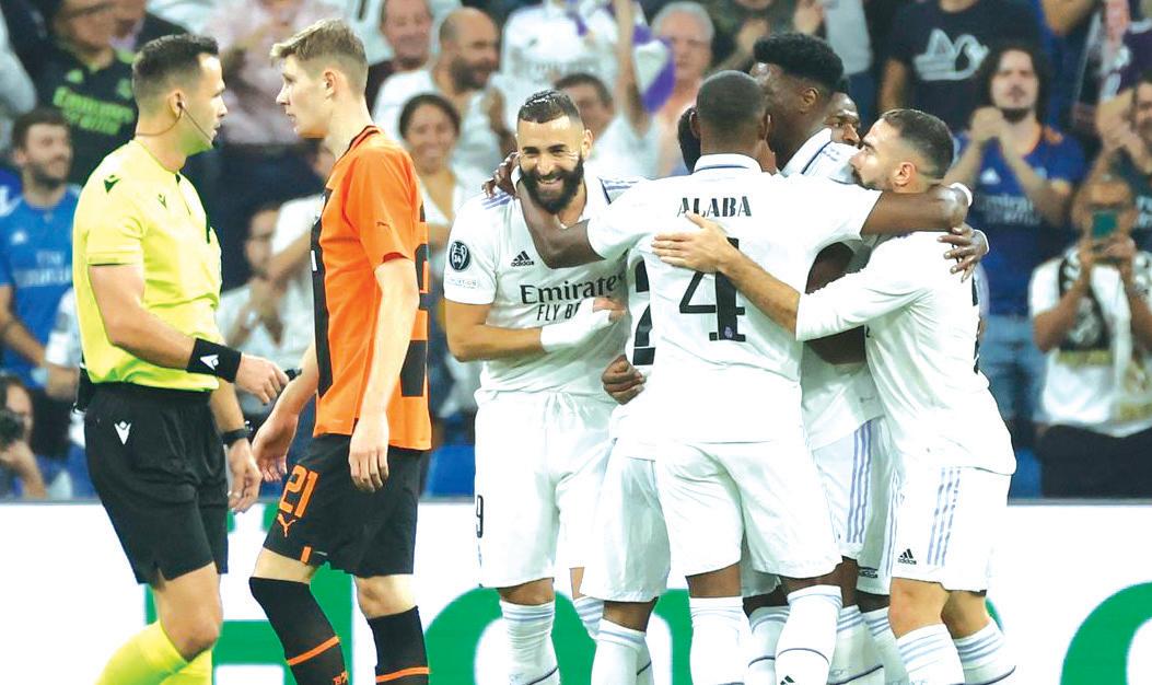 La escuadra local arrancó con todo y antes de la media hora ganaba con goles brasi leños: Rodrygo abrió el mar cador a los 12’, mientras Viní cius estiró la ventaja a los 27’. Benzema tuvo otra gran oca sión con un remate práctica mente sobre la línea de gol, pero se encontró con Trubin (35), que sostuvo a su equipo y evitó una mayor goleada. El conjunto ucraniano descon tó a los 38’, por intermedio de Oleksandr Zubkov, mien tras que en el complemento, los españoles erraron varias ocasiones de gol.