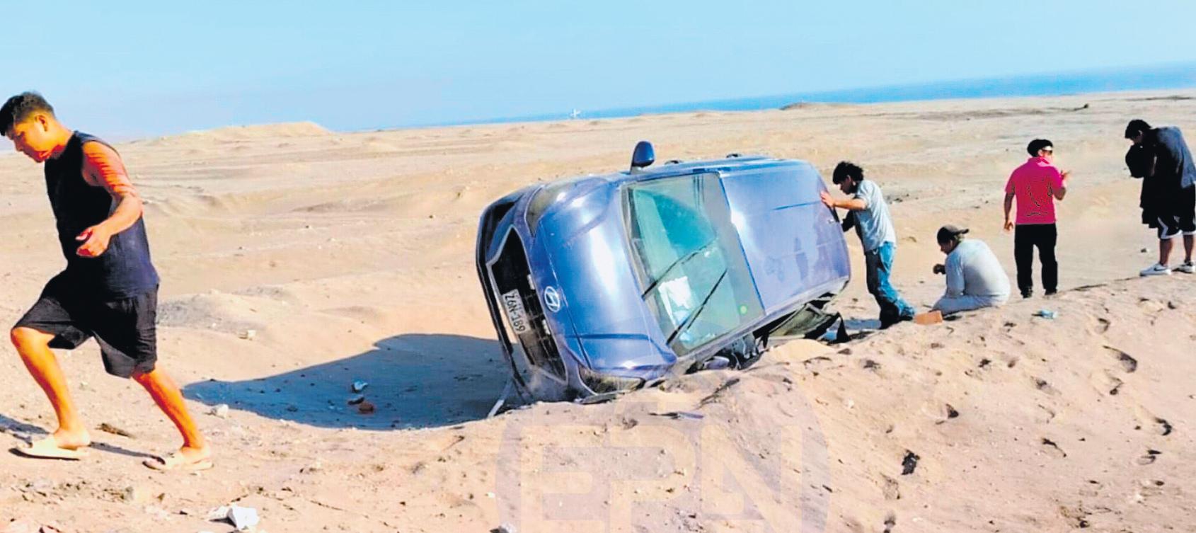 Vehículosedespistayvuelcaenla costanerasurdeIlo
