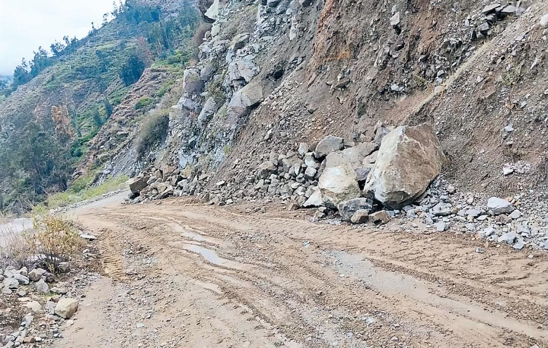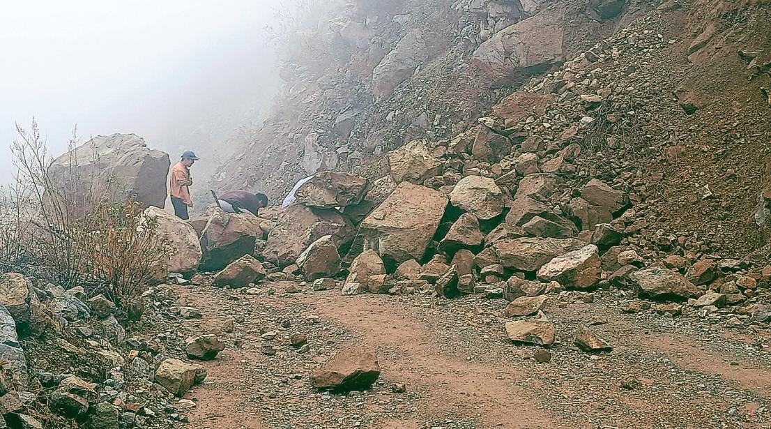 ►Carreteraquedóbloqueadaeimpidióeltránsitotanto vehicularcomopeatonal. Derrumbes en la comunidad de Yojo por intensas lluvias