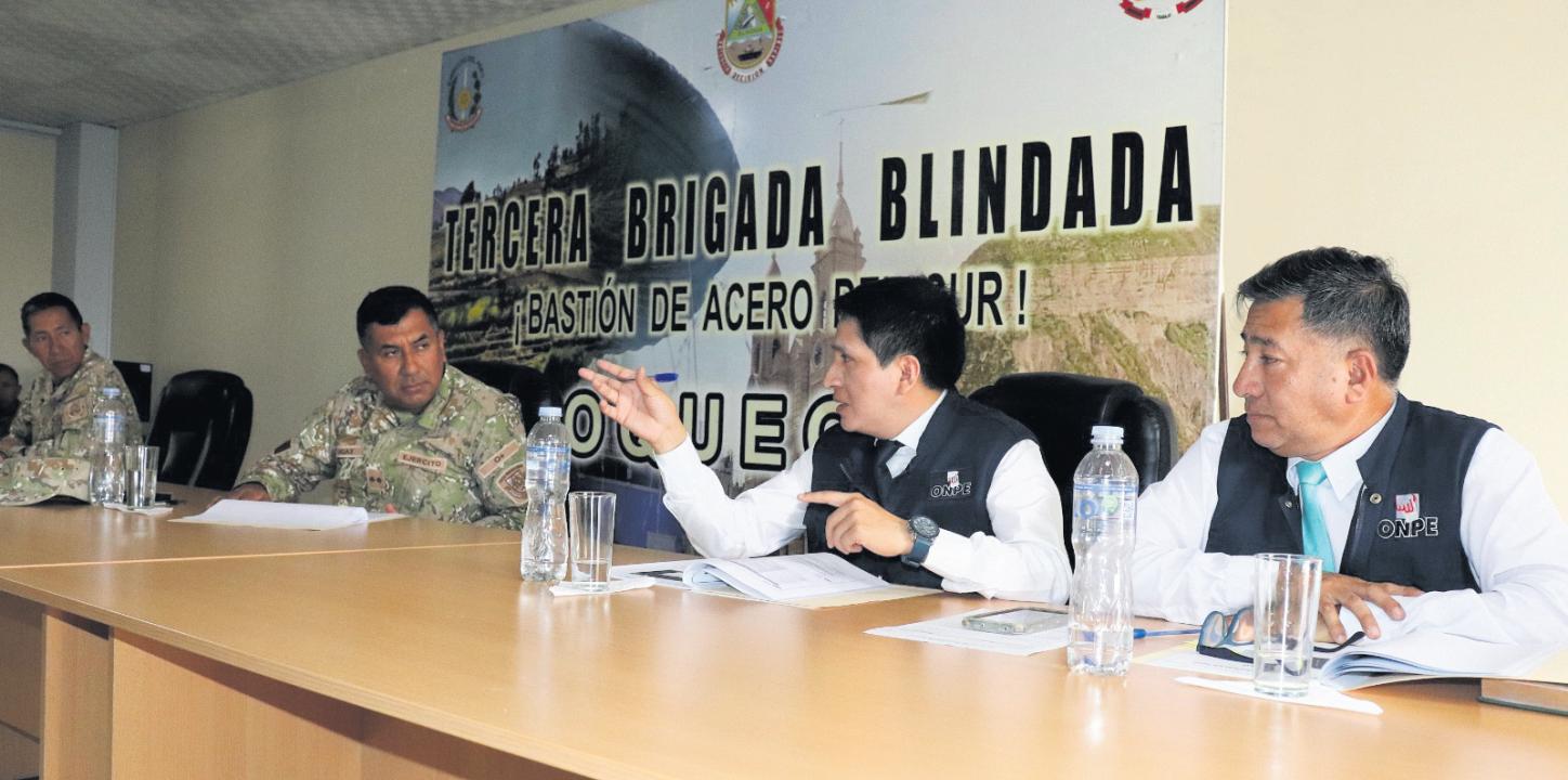 Lareuniónserealizóeljueves 12 de febrero de 2026 en las instalaciones de la Tercera BrigadaBlindadadelEjércitoy contó con la participación de Joel Rosales Sánchez, jefe de la ODPE Mariscal Nieto; Carlos Yactayo Aramburú, jefe de la ODPE Ilo; el general EP Orlando Ugaz Bartolo, comandantegeneraldela3.ªBrigada Blindada de Moquegua; y el coronel PNP Javier Cruces Gamero, jefe del Estado Mayor de la Región Policial Moquegua. Durante el encuentro se abordaron temas relacionadosconlaseguridaddelasofi-