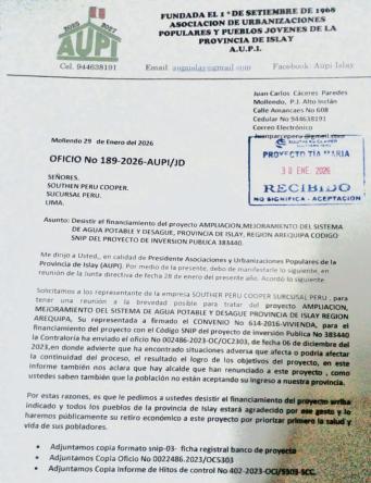 LA CEREMONIA SE REALIZARÁ EL DÍA 26 DE FEBRERO DEL 2026, A HORAS 14:00, LUGAR: MUNICIPALIDADPROVINCIALDEISLAY-MOLLENDO.