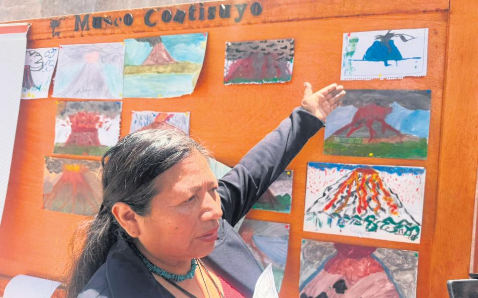 ron pinturas inspiradas en relatos históricos y elementos simbólicos como la Pachamama,la cerámica ancestral y las antiguasconstruccionesafectadas por la erupción. Las obrasfueroncreadasenminutos, demostrando —según la docente— que el arte es una forma espontánea de aprendizajeyexpresión.