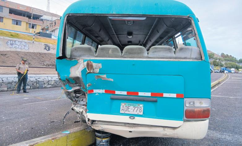 El hecho se produjo por un choque por alcance, cuando una cúster de servicio público de la Ruta 12, de placa A0E778, marca RMC, color verde y pertenecientealaempresaLibertad, conducida por TeodoroGuillenRendon(58)fueimpactada en la parte posterior por una camioneta 4x4, de