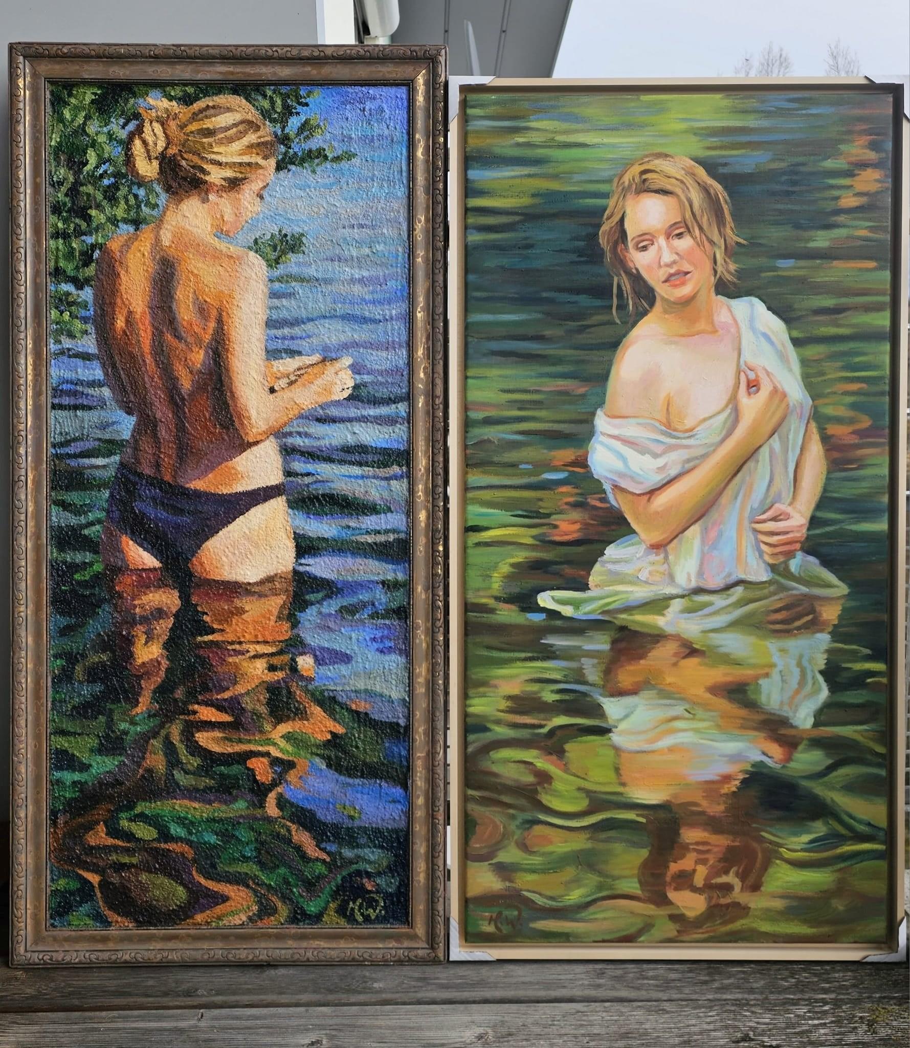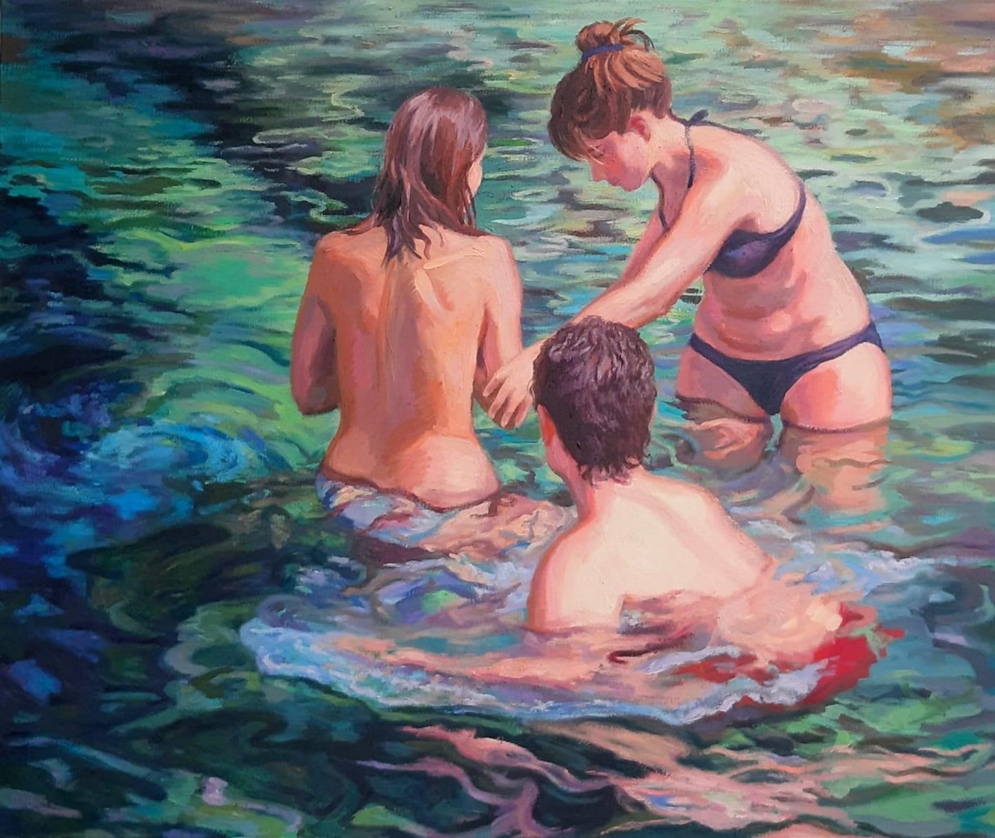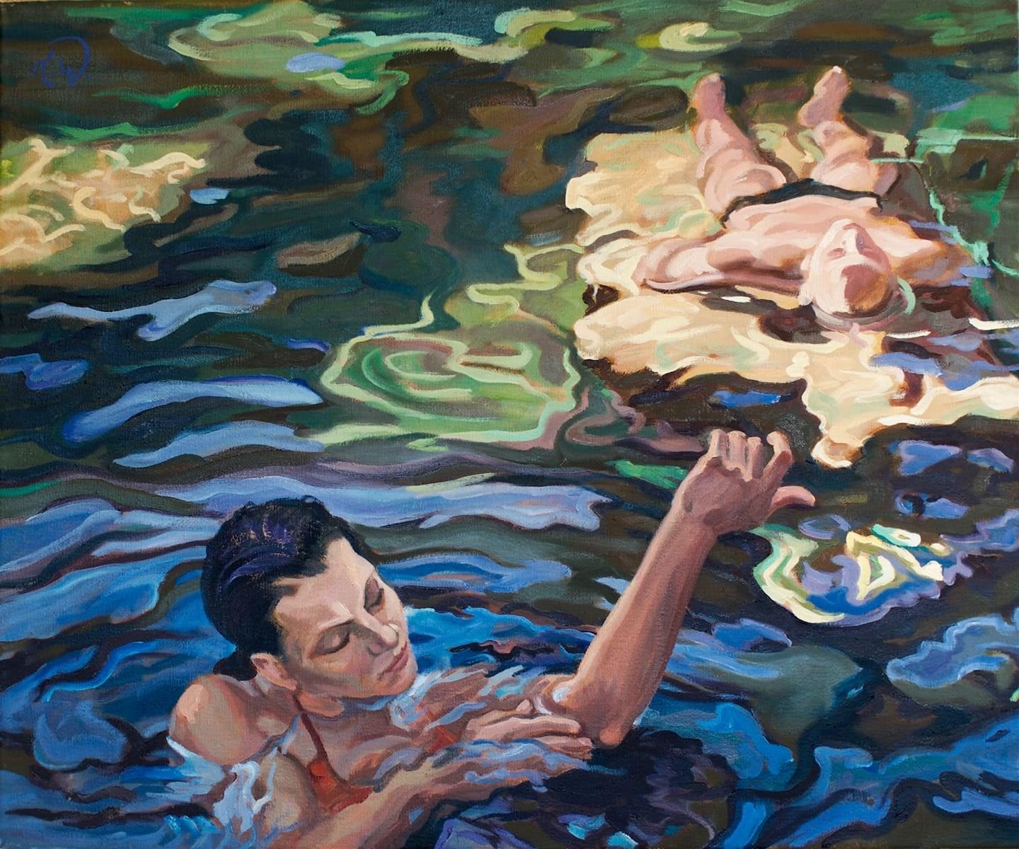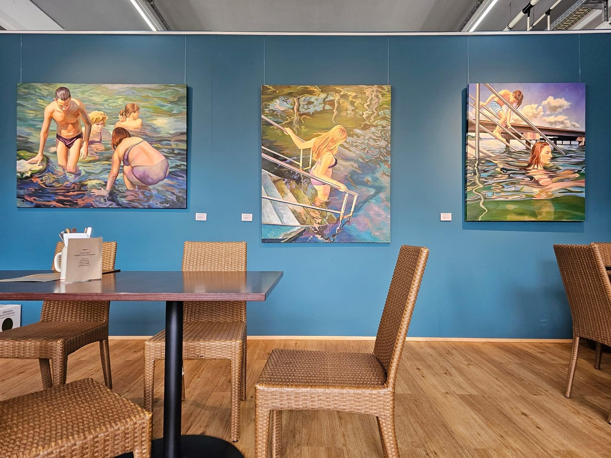 Equally central to this expansion is Woerle’s engagement with Palm Springs’ midcentury modern legacy: Poolside imagery, planar walls, reflected light, and architectural shadows appear not as lifestyle references, but as formal devices. Pools become horizontal mirrors, architecture becomes compositional structure, and color operates as spatial order rather than expression. This resonates naturally with Southern California’s relationship to modernist architecture and light.