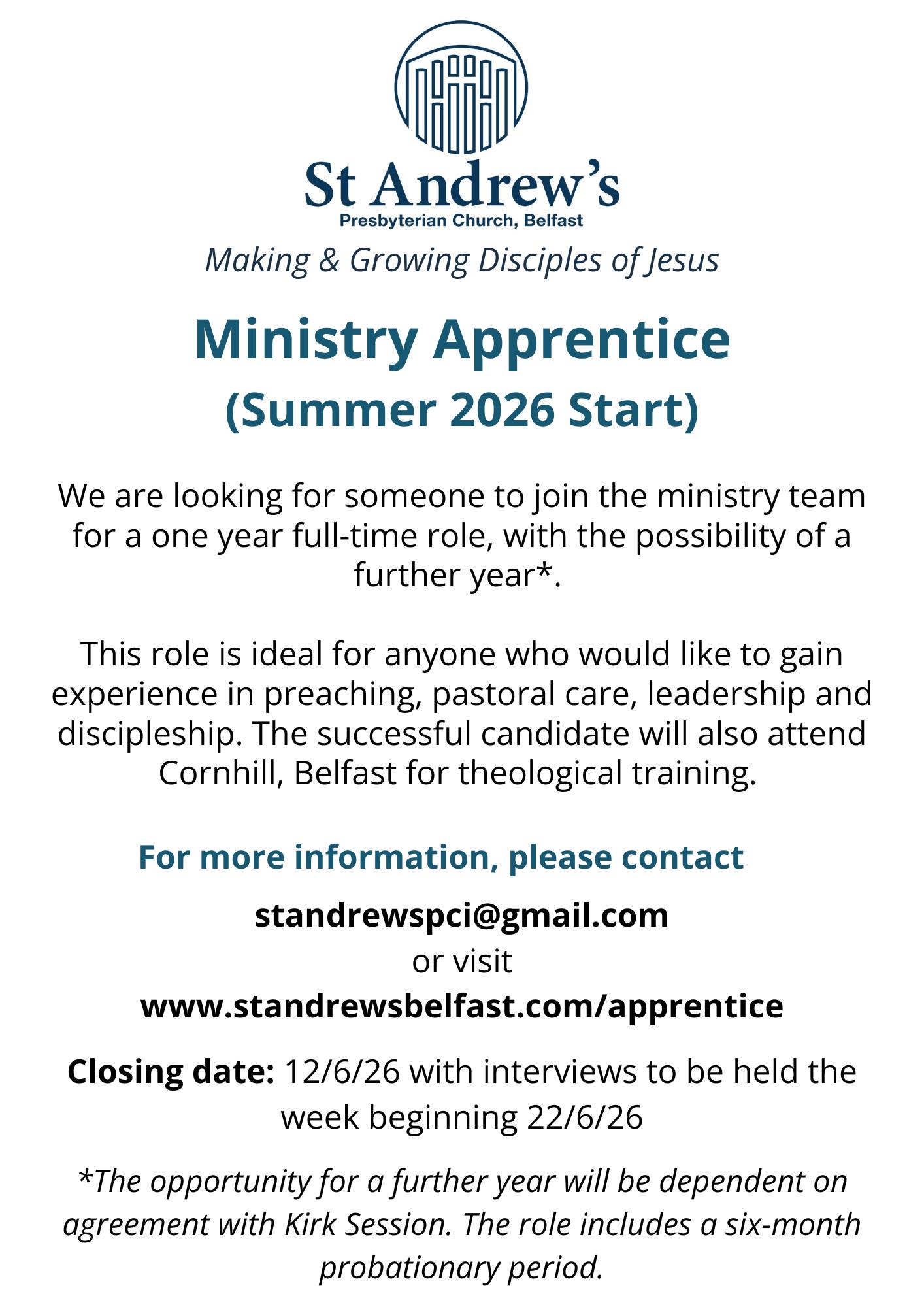 Editor’s Note: Information for this page is supplied by the General Secretary’s Department. Vacancies for conveners of commissions, councils and committees of the General Assembly are online at www.presbyterianireland.org/convenerships