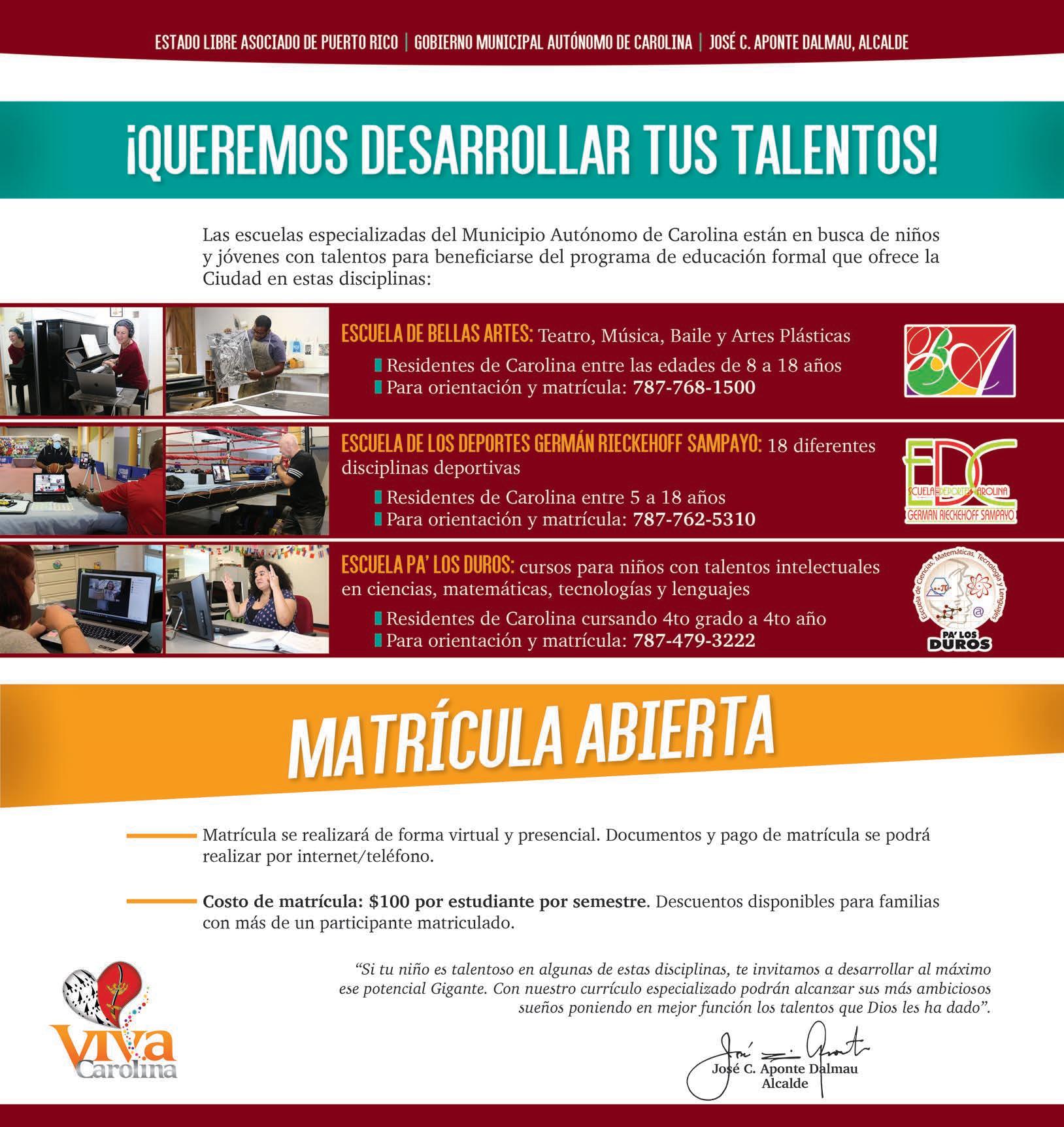 Para mayor información puede comunicarse al 787-727-1000 / 787-641-1919 Ext: 4370, 4371, 4372, 4376.